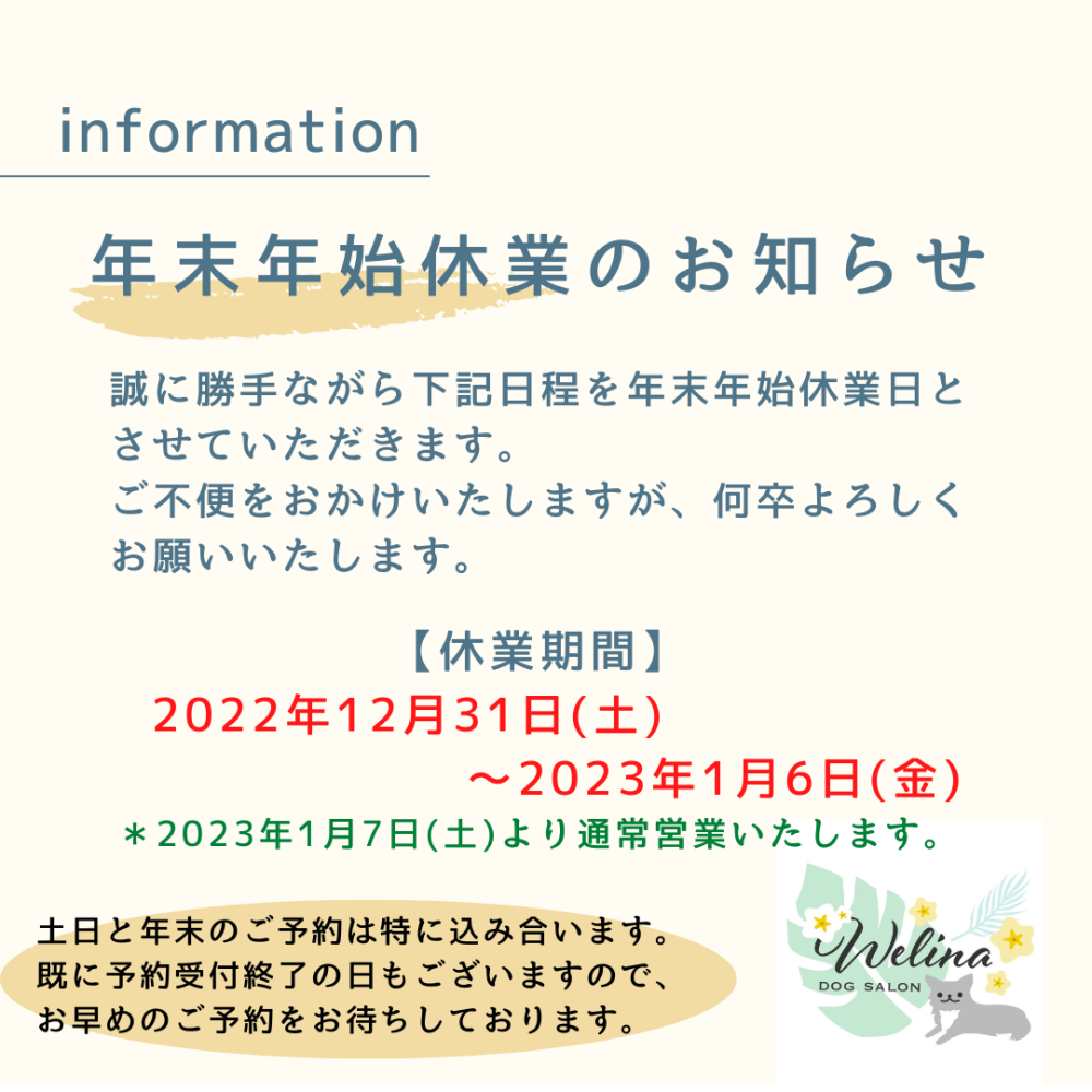 いつもDog Salon Welinaをご利用頂きありがとうございます。