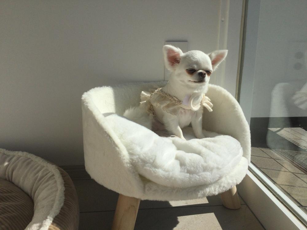 ホワイトのチワワ クンくんはのんびり屋さんの男の子